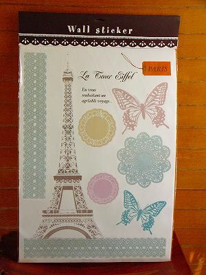 大きなエッフェル塔のステッカーを 中心に、 ガーリーなイメージのチョウチョや レースコースターなどをモチーフにした  とってもお洒落なウォールステッカー です! 色調は淡いお色で統一され 壁や窓ガラスに貼っても 主張しすぎることがないので 大きめの図柄でも邪魔にならず さりげなくお洒落に演出が楽しめます。  【パッケージ全体のサイズ】     :幅480×長さ685mm     【素材】: ポリ塩化ビニール  ※注※  --------------------------------- 当商品は商品サイズの都合上、基本的に  ※「同梱不可」の※「宅配便のみ」での  -----------  ------------- お届けになります。 その他のお品と一緒にご注文をいただき ました場合は、大変恐れ入りますが 別に送料を頂戴することになりますので どうかあらかじめご了承くださいませ。 ただし、その他のウォールステッカー、ノート、ポストカード類等は同梱可能です。ご不明な点など、詳しくはお問い合わせくださいませ。 デザインはとても繊細で緻密ですので、大人のお洒落さを感じさせてくれます。                     ▲ ステッカーの大きさのイメージとしてご参照ください    ※パッケージ裏の「使用上の注意」をよく読んでからご使用ください※「ウォールステッカー Paris:」もぜひご覧ください♪▼   ▼