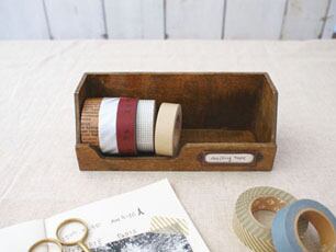 シンプルですが、使いこまれたアンティ ーク風のお色や質感をお洒落に演出して いるココロニクイ素敵な逸品です♪ 通常のマスキングテープでしたら、8~9個 程入ります。 また、こちらのテープストッカーは 上に重ねることができるんです♪ 可愛くて便利なマスキングテープは、おも わず手元に置いておきたくなりますよね♪ どんどん増えるマスキングテープをすっき りまとめてくれるストッカーは必需品で す! その他リボンストッカーとしてや スタンプケースとして、また小物の整理 などにもいかがでしょう♪
