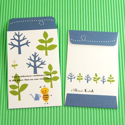 【お年玉入れにもピッタリ♪男の子にもOK!】  Shinzi Katohミニ封筒(ぽち袋)5枚セット[tenderness]Shinzi Katohさんのイラストがとっても可愛らしい、ぽち袋です。お年玉用やちょっとしたお礼やお祝いを包んだり メッセージを入れたり♪♪ミツバチのワンポイントが愛らしいデザインです。グリーンやブルーがメインカラーですので男の子用にも使えるウレシイデザインです♪サイズ:約94×60mm 5枚セット / 素材:紙 日本製 名刺サイズのカードがちょうど入るサイズです。ギフトに添えるメッセージカード用のお洒落なミニ封筒として使ったり、お年玉用、お守り袋などにもいいですね!アイディア次第で色々と便利にお使いいただけます。同シリーズ「Rose&Red hood」も御覧ください♪▼