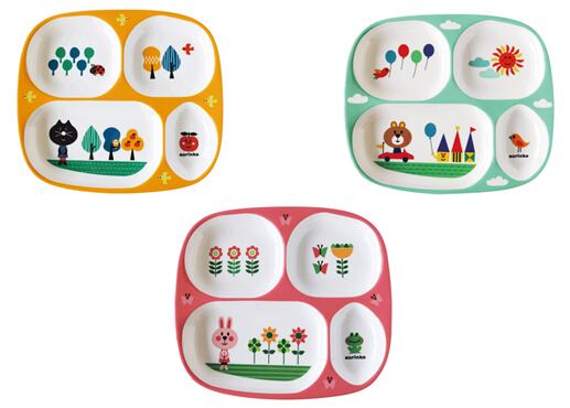 Decole aurinko メラミンランチプレート カラフルな動物たちを中心にキュートなモチーフをたくさんちりばめたメラミン製の“ランチプレート”です。おそろいのスプーン&フォークやコップ、ボウルもありますよ♪▼【ねこ】▼  ▼お揃いのシリーズアイテムはコチラから▼  ▼【うさぎ】▼ ▼お揃いのシリーズアイテムはコチラから▼▼【くま】▼▼お揃いのシリーズアイテムはコチラから▼ 【ランチプレートサイズ】約242×215×h23mm【素材】: メラミン製※電子レンジ不可  ▼お揃いの「コップ袋」もぜひご覧下さい♪▼