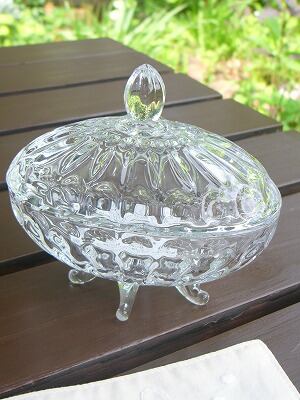 オーバル ガラス野小物入れ:アーモンド形のオーバルデザインが素敵なフタ付きのガラスのコンポートです。フタのつまみもコロンとしたアーモンド形が綺麗です。厚手のガラスなのであまり神経質にならずに開け閉めできます。フタや本体の側面にもアーモンド形のデザインがはいっていて波打つ景色が涼しげです。アクセサリーなどを入れたり、はたまた焼き菓子やキャンディなどを入れたり、またはポプリやコットンなどを入れても素敵です。一口ゼリーやデザインシュガーなどを入れてオシャレなティータイムを演出するのにもピッタリです! ▼つまみもコロンとしたアーモンド形 脚もネコ脚のデザインがエレガントです▲ぜひアイディア次第で楽しくお洒落にお使いくださいね♪♪サイズ:約W14×D7.5×H13cm Lサイズ:約W18×D9.5×H15.5cm 素材:ガラス