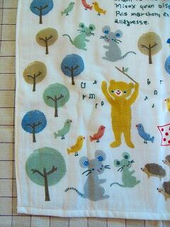 クマやリスやハリネズミなど「もりのなかま」が沢山描かれている楽しいデザインです。ガーゼと無撚糸のパイル地はとても柔らかな肌触りですので、小さいお子様用にお使いいただくのにもピッタリです。お礼やお返しなどにもいいですね。