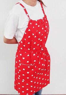 レッドハート:エプロン 真っ赤な生地にキュートなホワイトハートが白抜きされているとってもラブリーなエプロンです♪