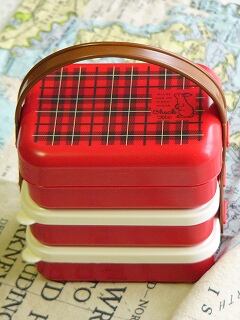 シンプルな線画で描かれたウサギのワンポイントがさりげなくて、ちょっとノスタルジックなチェック模様が、シックでお洒落な可愛らしさを醸し出していて魅力的です。3段のランチボックスは、2つの「おかずケース」に、ひとつの「おにぎりケース」というような作りです。もちろん、場合によっては3人分のお弁当箱としてつかってもOK♪一番上の赤いランチボックスは中フタの上に、フォーク&スプーンもセットされています。 下の2つはしっかり合わさる白いフタがついていますが、完全密封タイプではないので横向きにはしないでくださいね。 3段とはいえどもそんなにかさばらず、 お持ちいただけるサイズですので ぜひ気軽に持ち歩いてお楽しみいただきたい アイテムです♪おそろいの「保冷スツールbox」や「スタッキングプラマグ」などと一緒にいかがでしょう♪   ■サイズ・容量■ 約155×108×h200■素材・成分■ プラスチック製