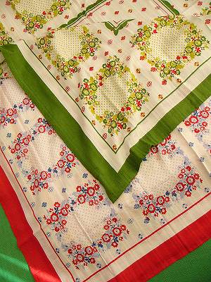 新鮮なオリーブのような少し落ち着いた グリーンと 晴れた日の鮮やかな太陽のような 綺麗なレッドをメインにした とても気持ちの良いデザインの お洒落なフリークロスです。 100×100cmの正方形サイズですので テーブルのセンタークロスとして ひし形にかけていただいたり シェルフの上にさりげなく 敷いていただいたり  ちょっと雑然としてしまった インテリアの急なめかくしなどにも 重宝しそうです♪ またはピクニックやお散歩などの時に ちょっと畳んで持ち歩けば お洒落なレジャーシート代わりにも なりますね。 綿100%ですので ご自宅でお洗濯していただいても 大丈夫です! 小さくて繊細な小花模様が優しく お洒落に暮らしを彩ってくれますはっきりと鮮やかなレッドに爽やかなブルー&ペールブルーが素敵にマッチしています。まさに“南仏の風と太陽”を感じるような爽やかで華やかなデザインです♪ オリーブグリーンの落ち着いた雰囲気に華やかさを添えるのはカシスレッドの挿し色です。あえて真っ赤ではなくダークピンク系をあわせているところが、心憎いお洒落さです♪ 「レッド」、「グリーン」どちらも同じデザインなのですがそれぞれの色使いで随分雰囲気が違いますね。▼ 【ROSE】のデザインのフリークロスもぜひご覧ください♪▼▼同シリーズの【FLEURL】エプロンもぜひご覧ください♪▼▼ ▼ ●● ●● ●● ●●● ●● ●● ●▼同シリーズの【ROSE】エプロンもぜひご覧ください♪▼▼ ▼●● ●● ●● ●●● ●● ●● ●みなさんの暮らしを明るく彩る1品になりますように♪