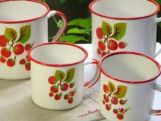 イチゴのホーローマグカップ