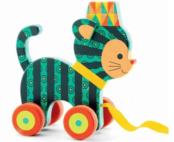 よちよち歩きができるようになったお子様へのプレゼントに♪ご出産のお祝いに★ また木製トイのお好きな方に♪そして!寺田順三さんファンの方へ♪【フランス発:DJECO】 プルトイ「DJECO(ジェコ)」はフランスの老舗玩具ブランドです。伝統的でありながら、いつも斬新なデザインの知育商品を開発しています。ヨーロッパテイストの配色バランスがなんともかわいらしいネコをモチーフにした“プル(=引く)トイ”です。前方の紐を引くと、車輪がコロコロと転がります。ヨーロッパテイストの配色バランスがなんともかわいらしい・・と先にお伝えしましたが確かに日本のおもちゃではなかなかおめにかかれない絶妙な配色&デザインです!しかし実はこちらのアイテム、お好きな方はお気づきかもしれませんがモチーフデザインは日本でも非常に人気のあるイラストレーター【寺田順三】さんのデザインなのです!企画自体はフランスDJECO社によるものなのですがこういう形で寺田さんのデザインアイテムに出会えるのは本当に嬉しいですよね!!寺田さん独特の可愛らしい中にどこかノスタルジックを感じる気品もあり、お子様のご出産やお誕生日プレゼントなどにお贈りした際にはお子様はもちろん、お洒落なデザインがご両親にも喜ばれそう♪そして寺田さんファンにはたまらないコレクションになりそうです。また、木製トイがお好きな方は大人の方にも多いですよね!トイ好きゴコロをくすぐられる絶妙なデザイン&色合いに、プルトイコレクションにも加えたくなる一品です♪